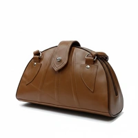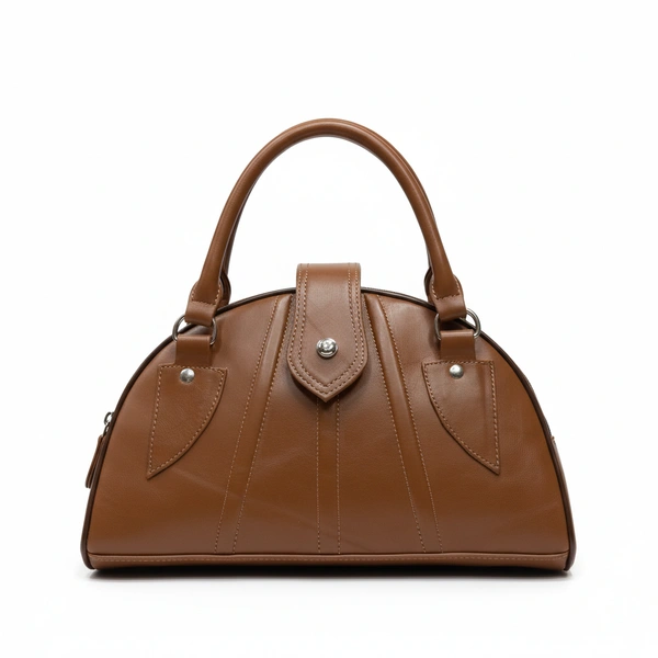 Ambur Elegance Dome – Pure Leather Handbag, Dark Tan