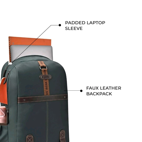 Casual Vegan Leather Laptop Backpack For Men/Women(Green-Brown)