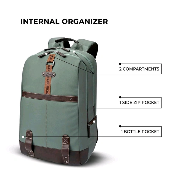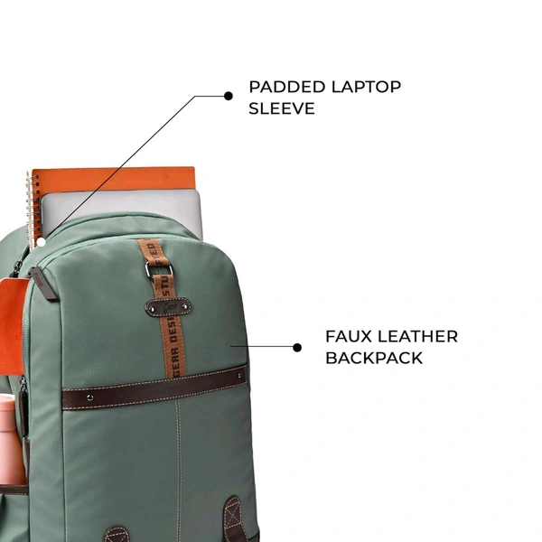 Casual Vegan Leather Laptop Backpack For Men/Women (Pista Green-Brown)