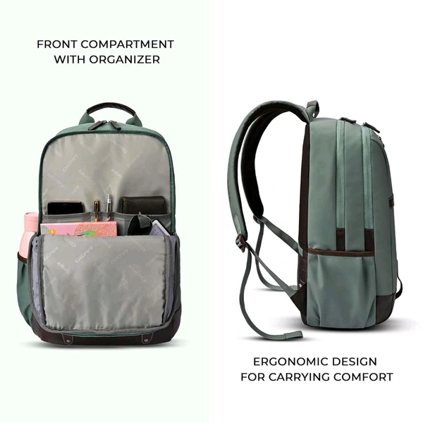 Whether you’re heading to the office, juggling college life, or embarking on your next adventure, this backpack is designed to meet all your needs. Its sleek Pista Green-Brown color combination adds a touch of sophistication, making it versatile enough to complement both formal and casual outfits. Plus, its water-resistant vegan leather ensures your belongings stay safe even in unexpected weather.